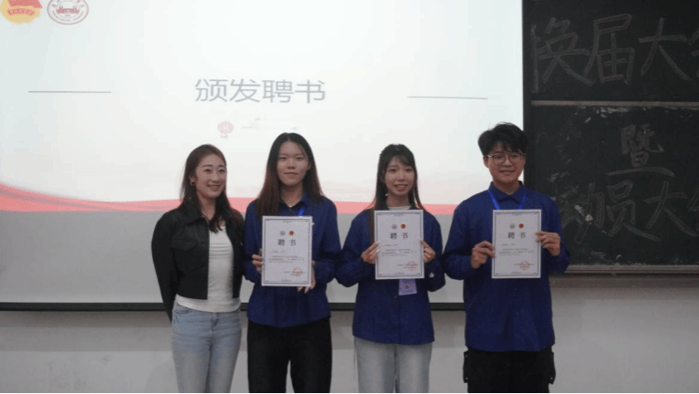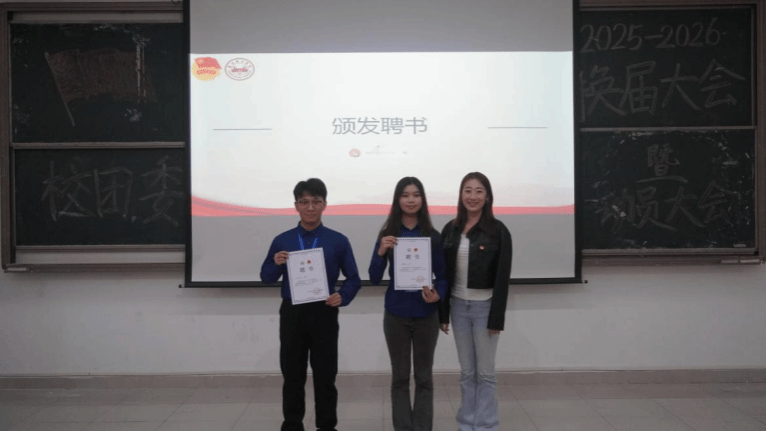 (孙蕾婷老师为2024-2025届学生兼职团干颁发聘书并合影)