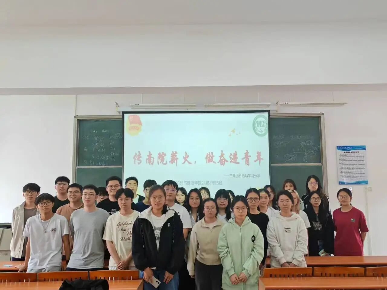 为让全体团员全面了解校史校情与学校发展规划,引导团员们将个人成长融入学校建设,护理与健康学院2024级护理学专业5班团支部通过集中学习研讨、主题微团课等形式,促进团员们深入学习交流,强化知校爱校意识与行为规范认同。与此同时,班级同步开展知识竞赛与“传南院薪火,做奋进青年”演讲交流活动,营造比学赶超氛围,有效激发团员们的爱校荣校情怀,以优良学风与实际行动展现南院青年担当。